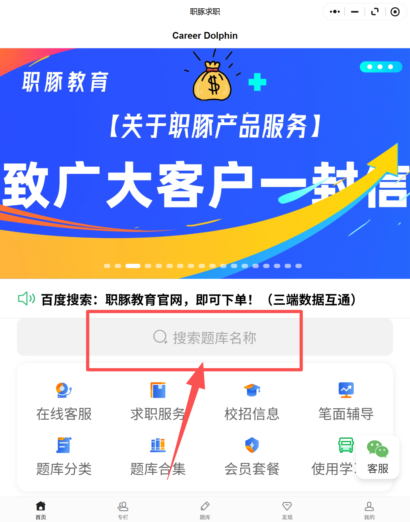电脑/手机打开微信——搜索职豚求职——小程序打开首页右下角联系专属客服